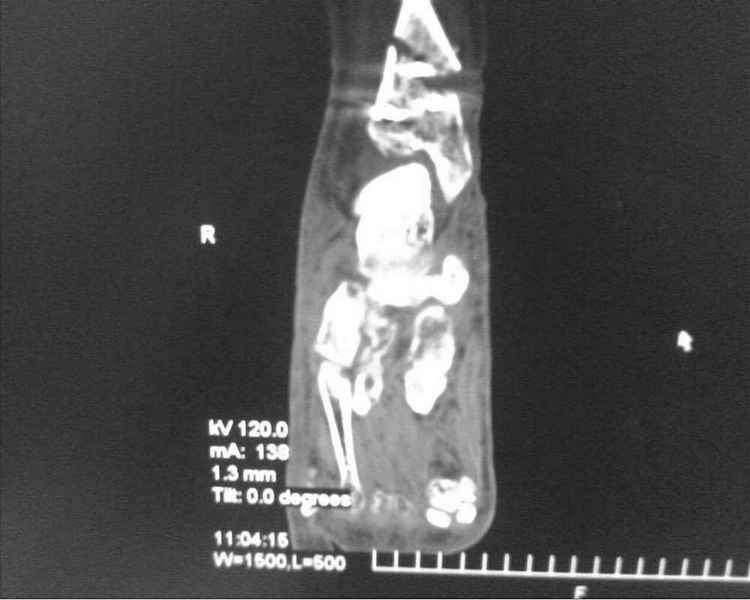 месте операционного доступа. Вторым этапом планировалось наложить аппарат Илизарова для