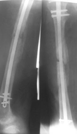 Бедро не отечно, с признаками хрон. остеомиелита без обострений,