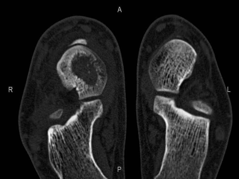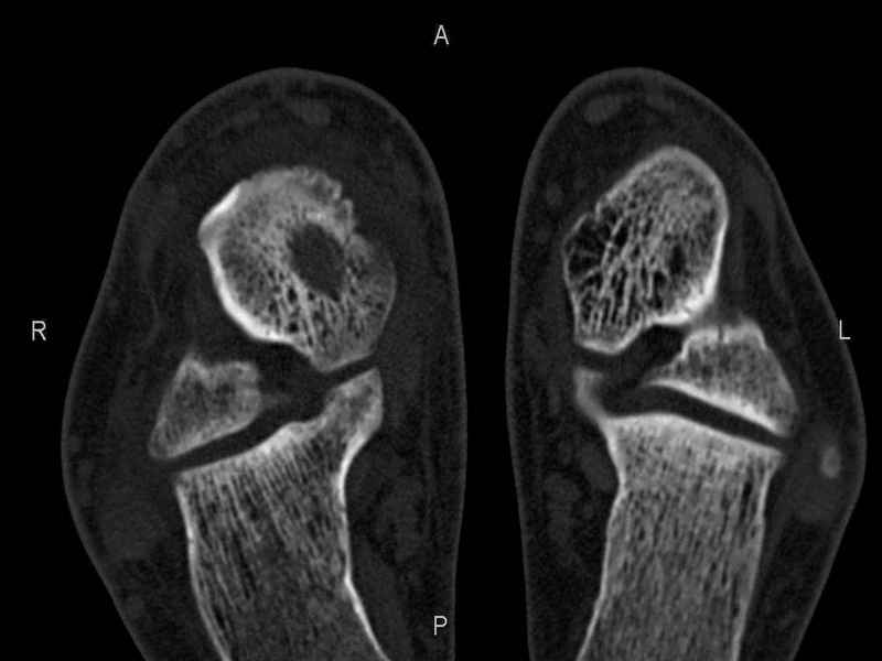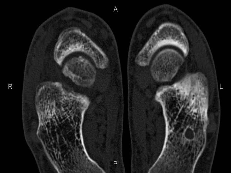 На СКТ картина рассекающего остеохондрита блока