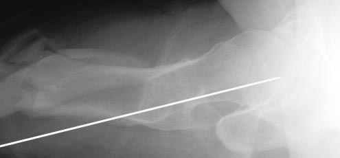 оси шейки бедра вдоль ее задней стенки, типа как на картинке. Если