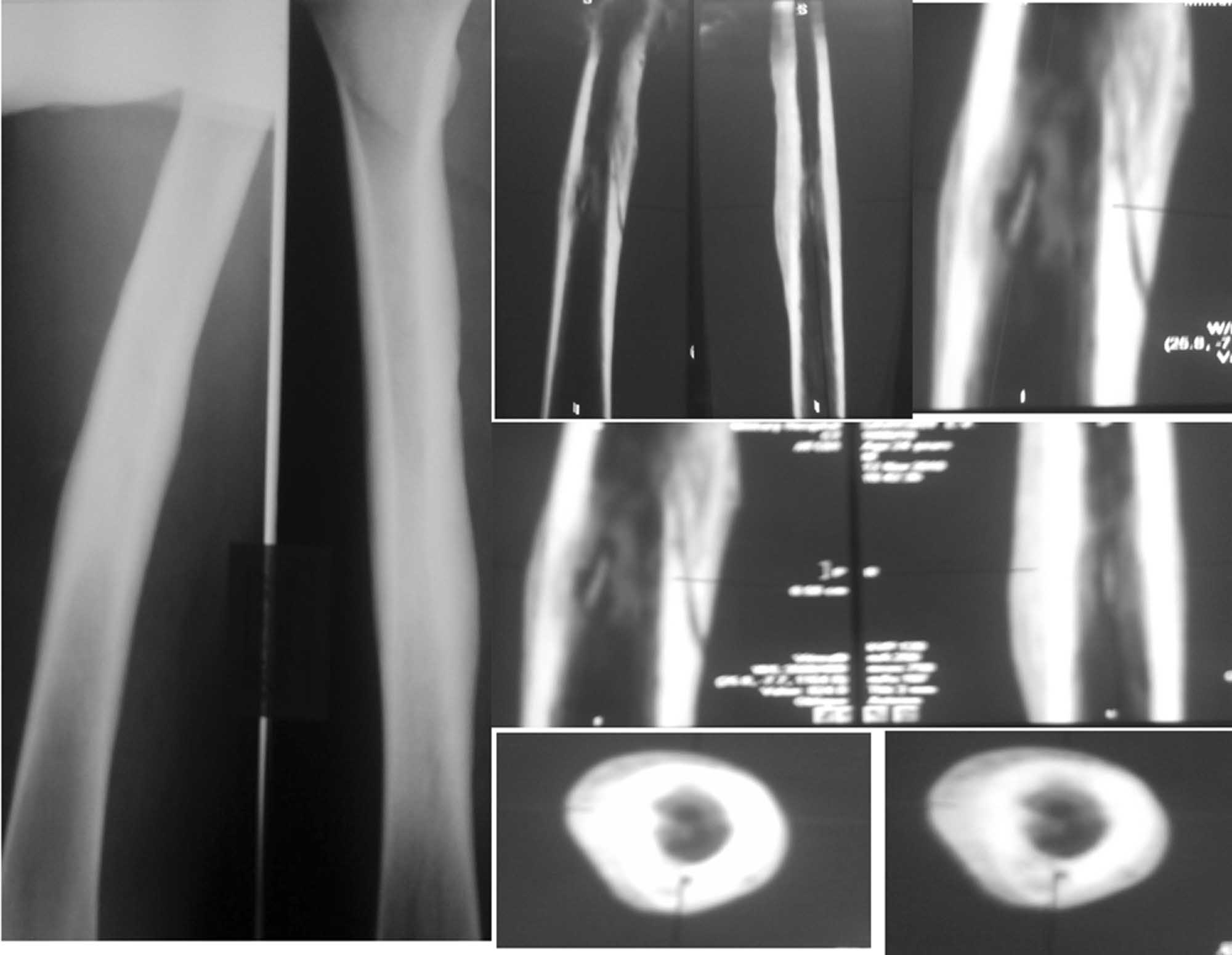 КТ признаки хронического гематогенного остеомиелита. Объективно: внешне мягкие ткани