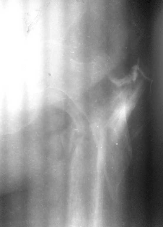 Фистула функционирует от случая к случаю - последние 2 дня выделений небыло, сделали контрастирование (с трудом вошло 5 мл контраста). Признаков воспаления в зоне поражения нет, лабораторные показатели в пределах нормы. Судя по распростарнению контраста - локальный остеомиелит в месте расположения стержня АВФ