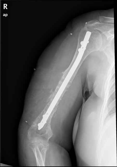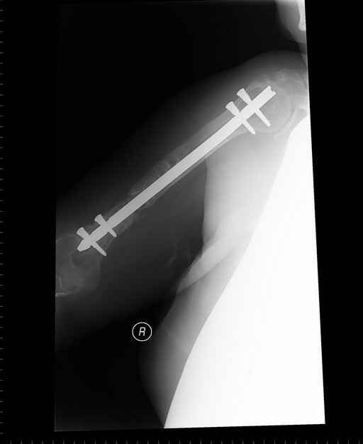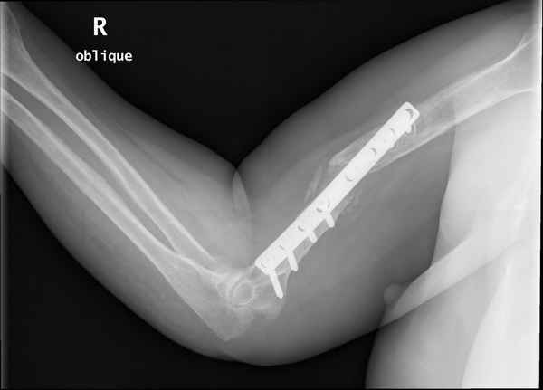 остеосинтез пластиной - несращение - реостеосинтез стержнем там же через год (обычным, с