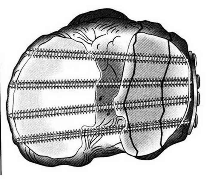 солидного базиса в субхондральной зоне. Пластина подпорка (Butress)