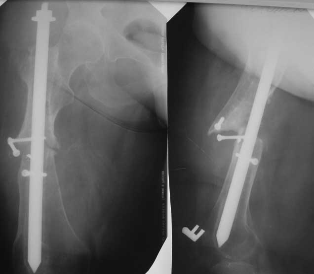 стержнем типа ЦИТО - формирование ложного сустава. Оперирована повторно 4 года назад-
