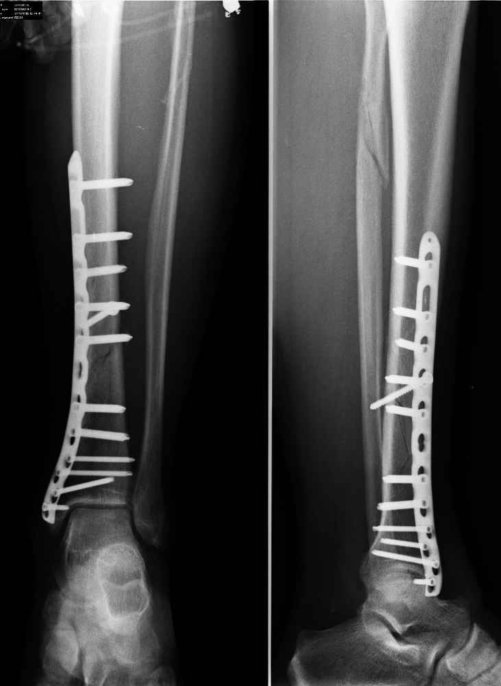 (падене на коньках), остеосинтез через 4 часа, пластиной с угловой сабильностью.
