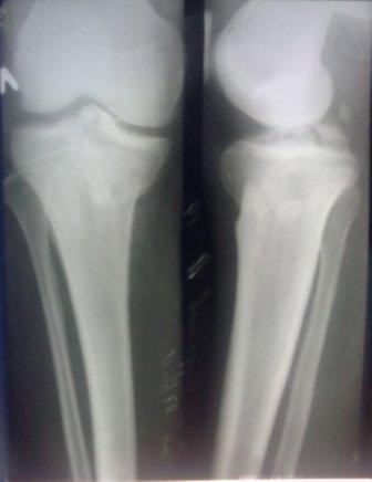 Сегодня обратился больной 35л. Травму получил 3 мес.назад, упал в яму, лечился в отдаленном районе гипсовой повязкой, 1 месяц назад гипс сняли , и больной начал ходить с нагрузкой, постепенно появилась деформация коленного сустава, неустойчивость и боли. Локально: деформация коленного сустава, голень смещена кзади- типа подвывиха, разгибание 170гр. Сгибание 150гр.симптомов повреждение боковых коллатеральных