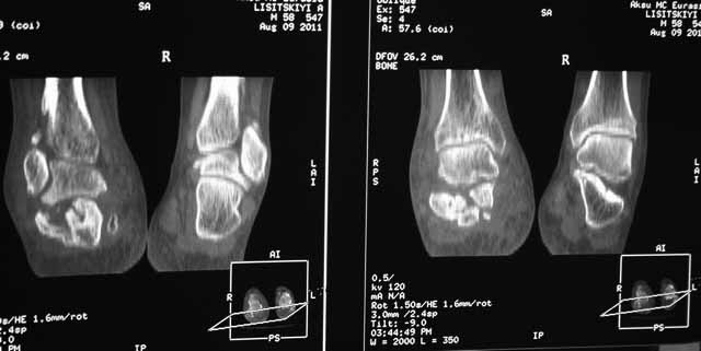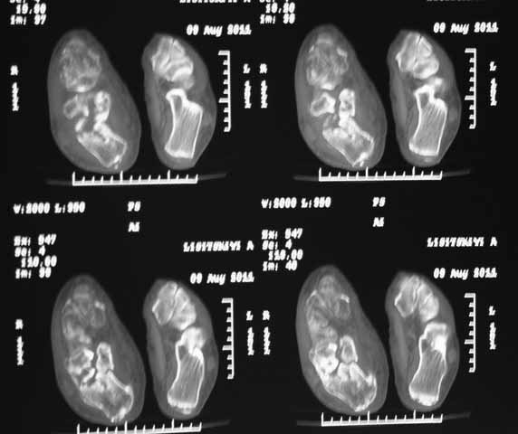 сомнения в консолидации перелома.Ранее у нас не было опыта КТ переломов стопы и сканы привели