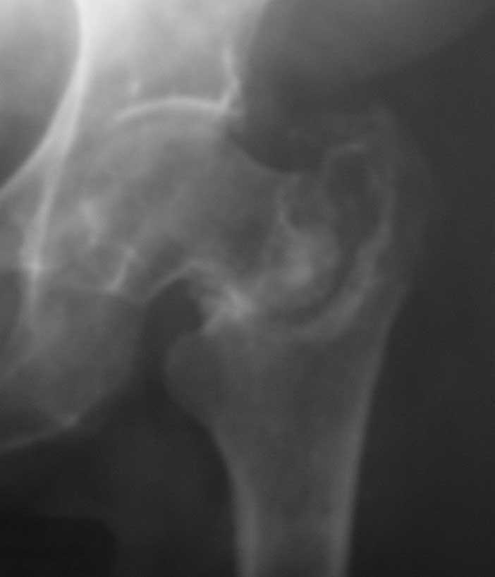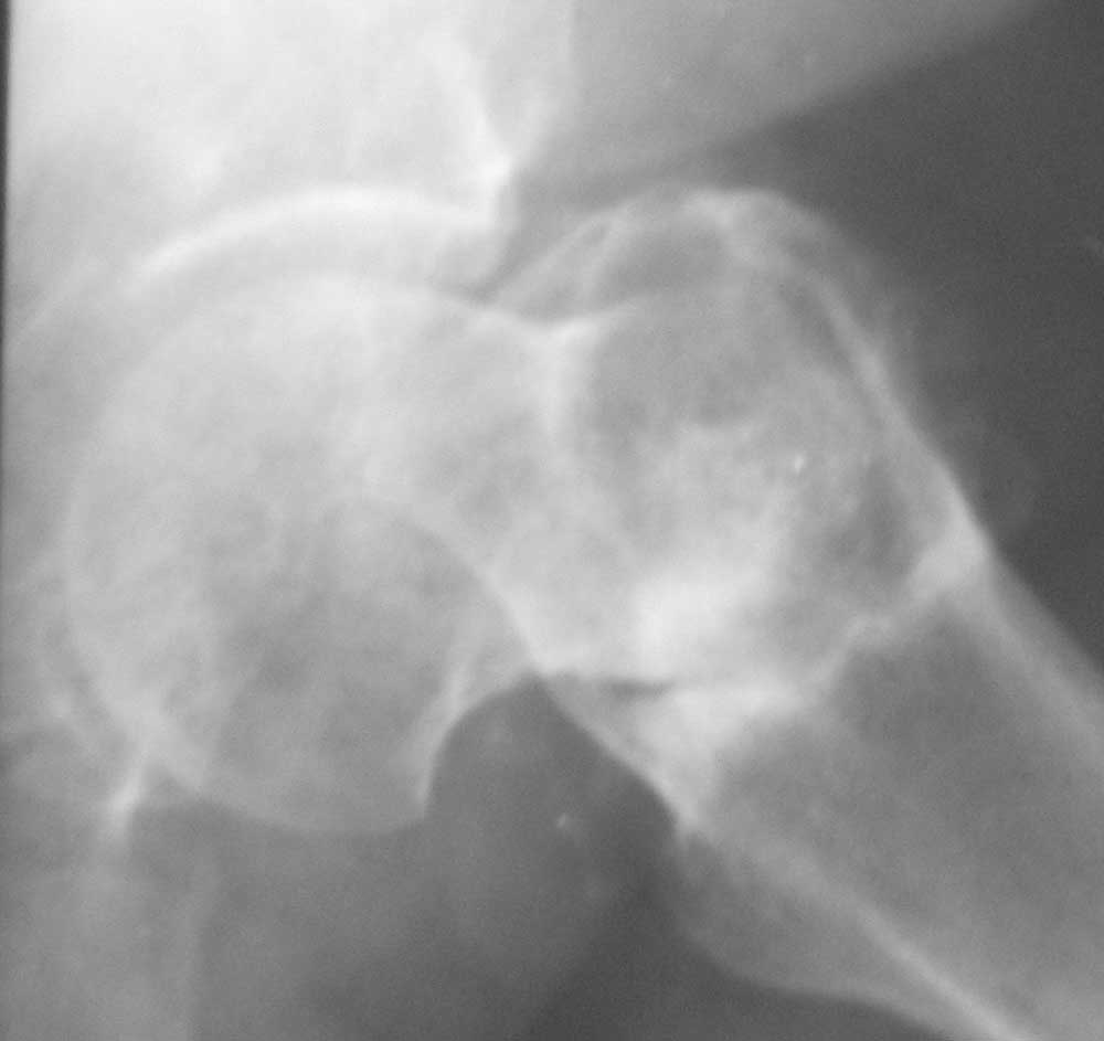 Больная 61 год. Травма 1 год назад – закрытый базальный перелом бедренной кости без смещения.