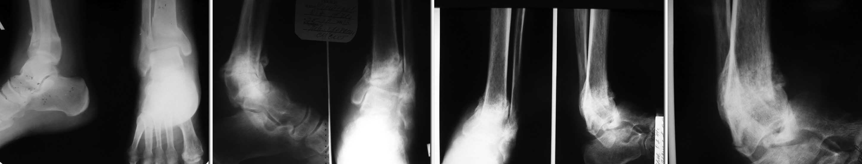 (снимок 2 ) Пациент начал ходить по консультантам. К нам обратился к декабрю, боли усилились значительно. Р-логически - полный передний вывих стопы (последняя пара рентгенограмм), однако пациент ходит с тростью.