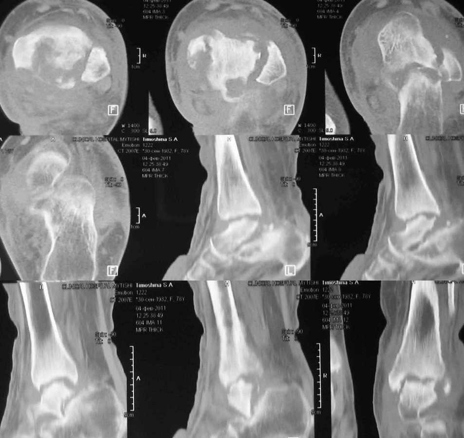 Женщина 78 лет. После инъекции дипроспана (несколько месяцев назад) развился артрит с некрозом тарана