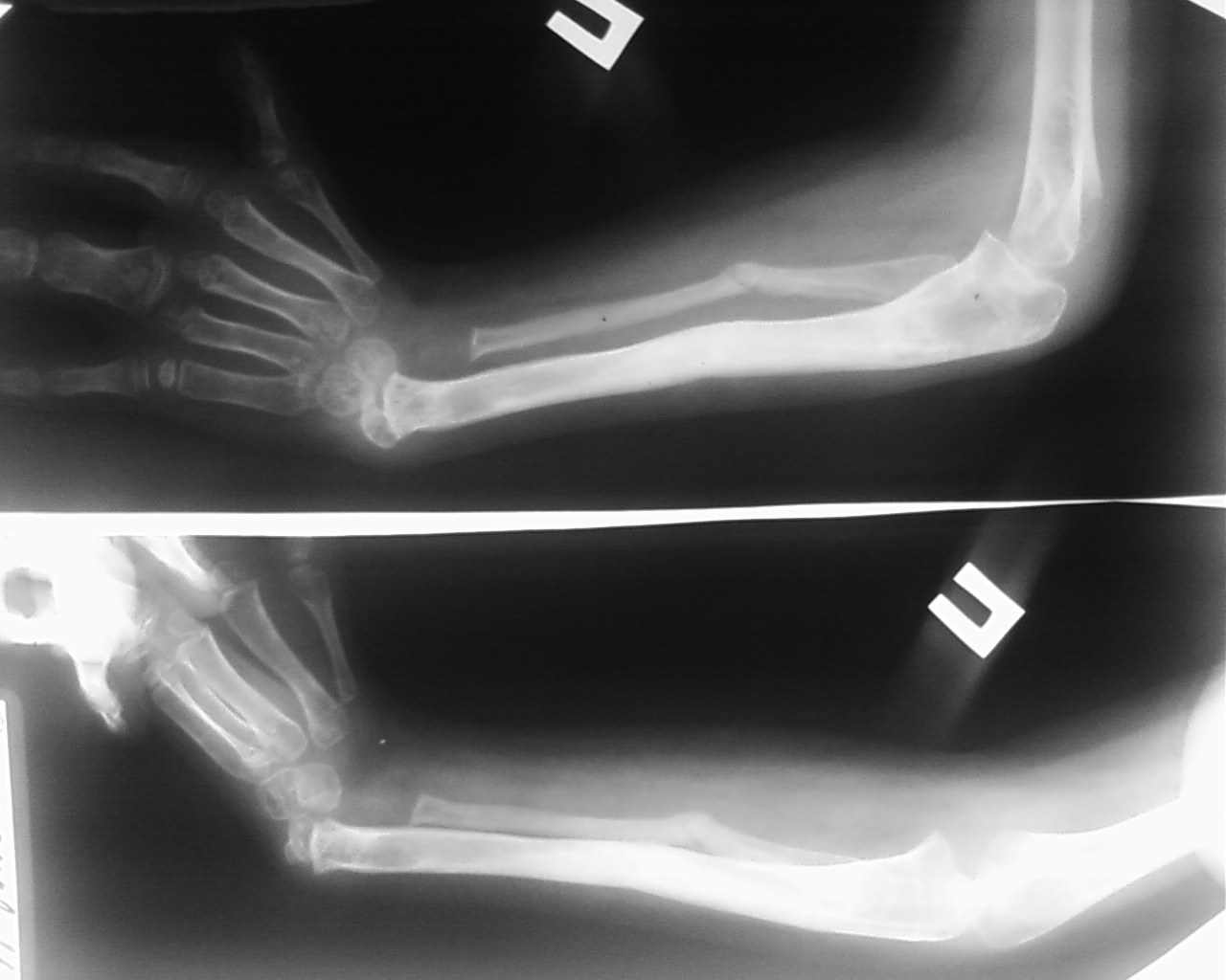 В мае 2009 года проведено удлинение обеих костей правого предплечья в аппарате Илизарова на 4 см, в процессе дистракции был разрыв регенерата, произведена компрессия в аппарате структура кости восстановлена. Сохраняется порочное положение кисти