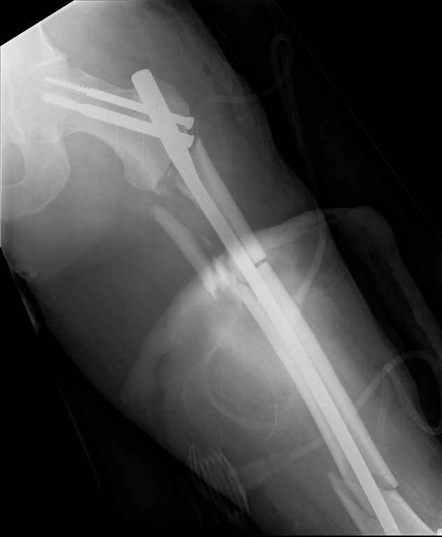 контроль ЭОПом стояние отломков нормальное, зашились. На контрольной R-мме на утро