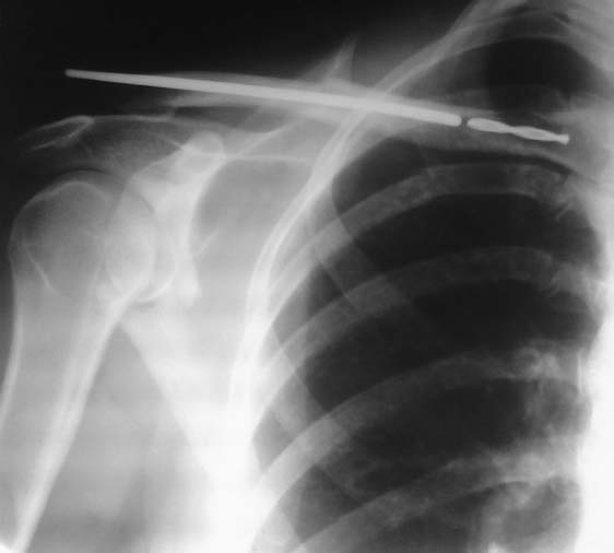 На днях прооперировали пациентку по поводу банального перелома ключицы в средней трети