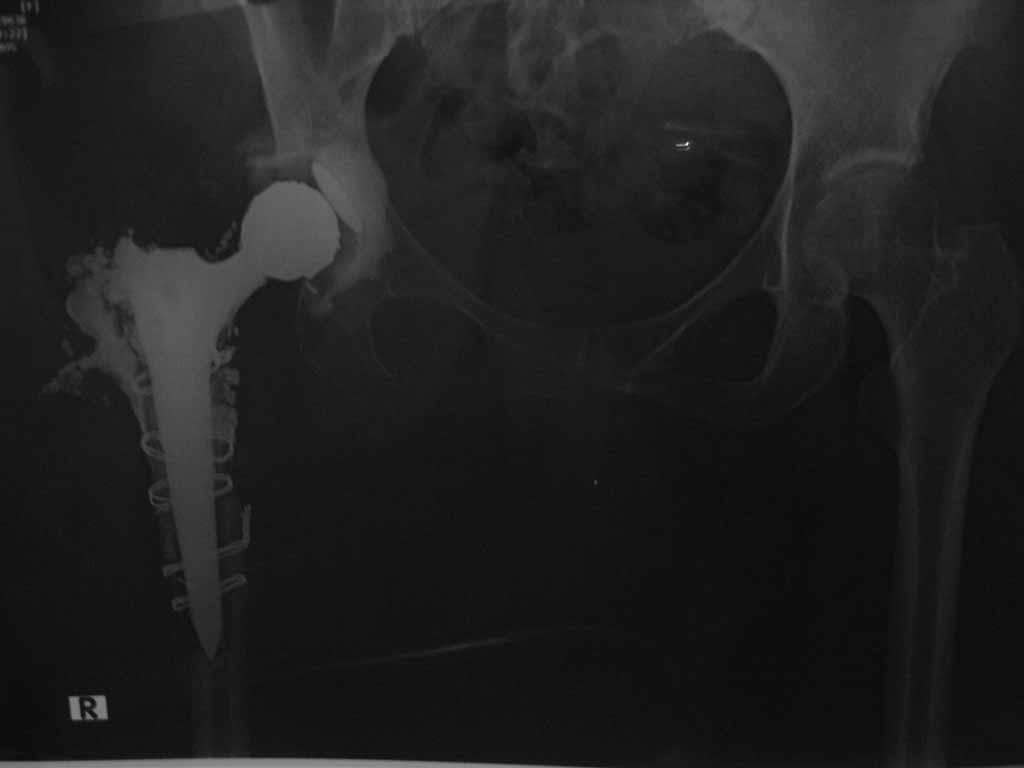 В августе 2010 года оперирована по поводу коксартроза пр ТБС Тотольное эндопротезирование. Видемо, во время обработки бедренного канала треснула вся проксимальная часть бедра. В послеоперационном периоде опер.рана не заживала..открылся свиш. нагноение!!! К нам поступила 30.05.2011 г . В настоящая время серозо-гнойное отделяемое из раны.