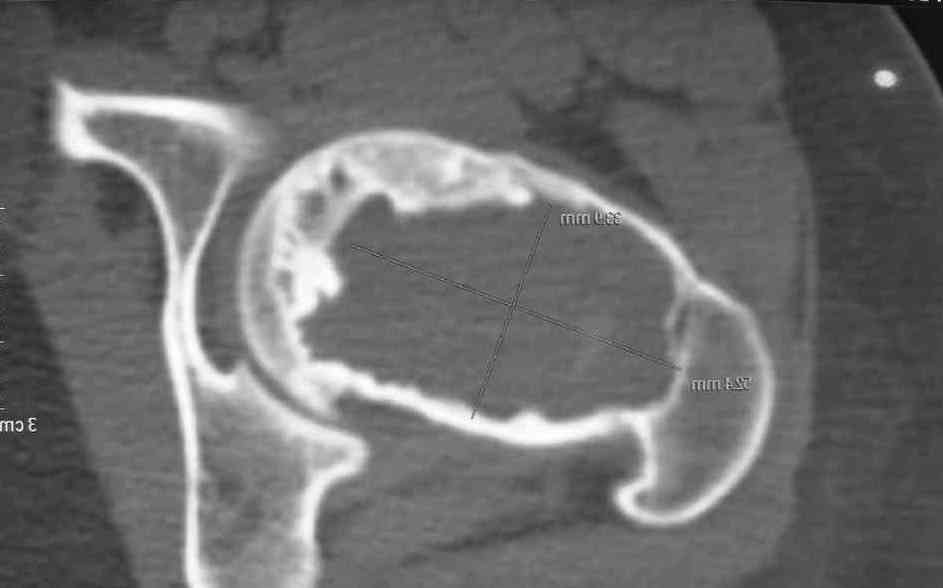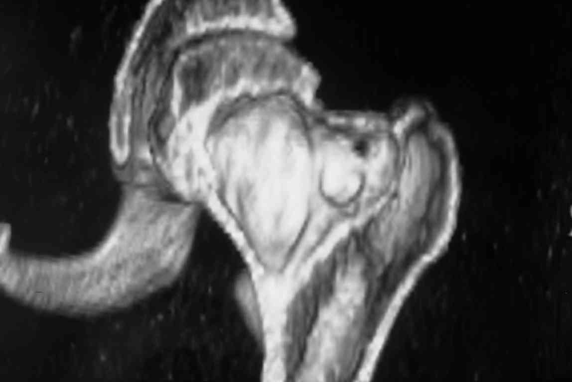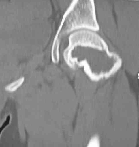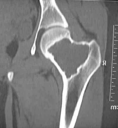Из анамнеза:со слов больной в 2006 г. появились боли правой н/конечности, обратилась поместу жительства к хирургу, было выполнена МРТ поясничного отдела позвоночника,назначено физиолечение. Через 2 месяца боли прекратились, через 4 месяца рецидивболевого синдрома. С 2006 – 2010 проводилось консервативное лечение по поводуостеохондроза поясничного отдела позвоночника. В октябре 2010 г. боли усилились.Выполнены Ro и КТправого тазобедренного сустава, выявлен очаг патологической перестройки. Быланаправлена на консультацию в УНИИТО.