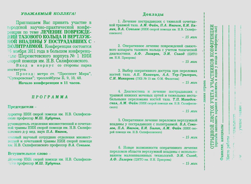 [Ortho] Программа конференции НИИ СП Склифосовского