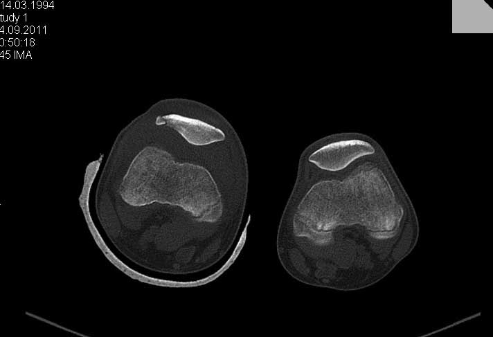 Обратился ребёнок 15 лет с оскольчатым переломом надколенника. Давность травмы 1