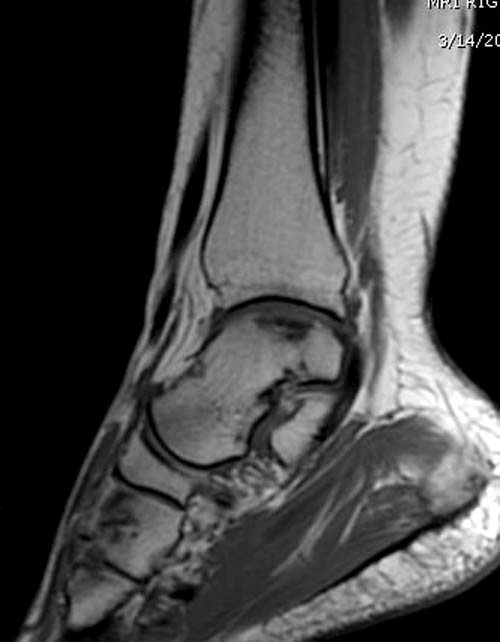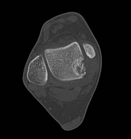 Разбираемый случай не имеет ничего общего с классическим Аваскулярным Некрозом Таранной кости. Здесь так назывемый (osteochondral defect) или osteochondritis dissecans (OCD) таранной кости, при котором патология локализуется в медиально-верхнем нагрузочном отделе. В основном OCD