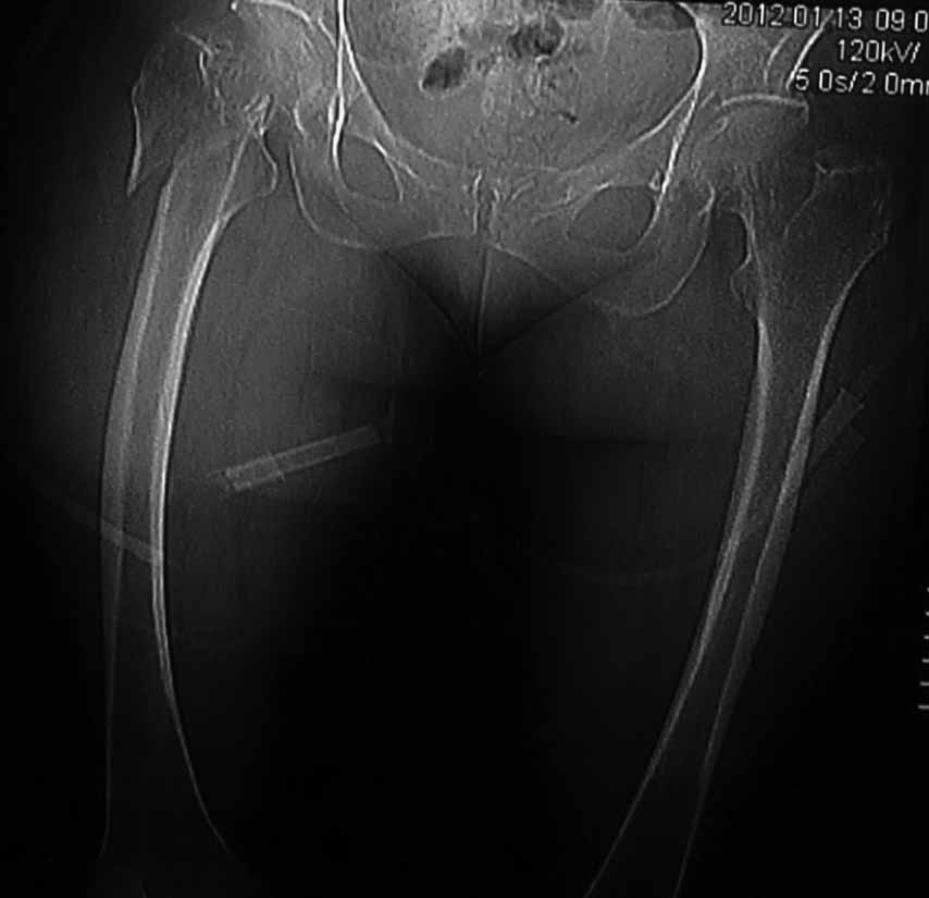 перелом обеих лонных костей без смещения; закрытый перелом проксимального конца правой