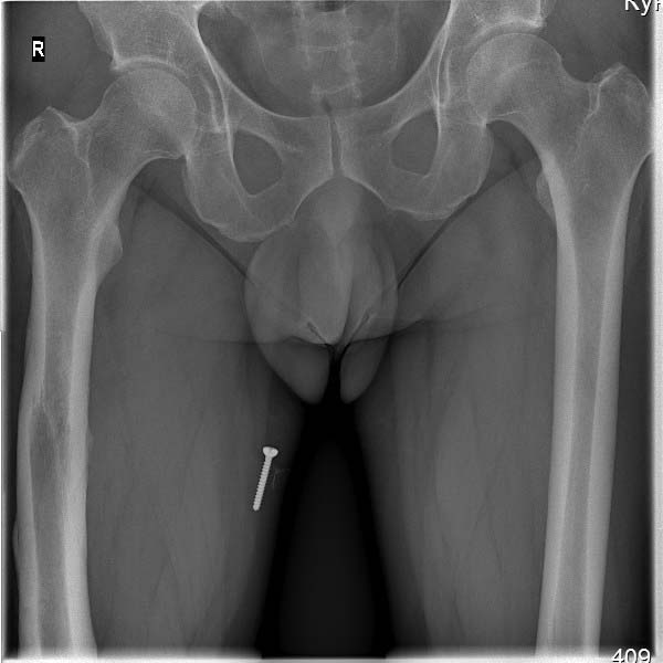 Пациент, мужчина, 45 лет. В 1982 году получил закрытый перелом диафиза бедренной кости