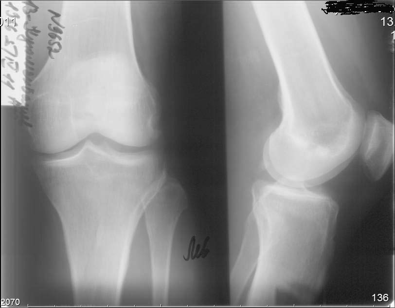 В настоящее время беспокоят боли в области правого надколенника, при длительной ходьбе появляется ощущение