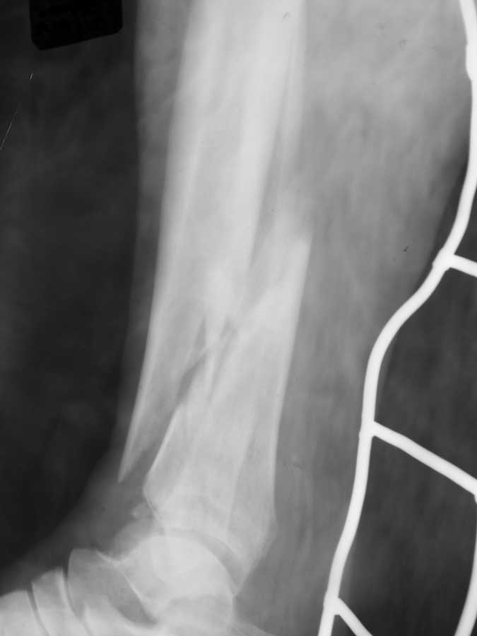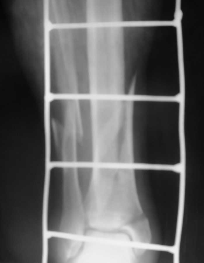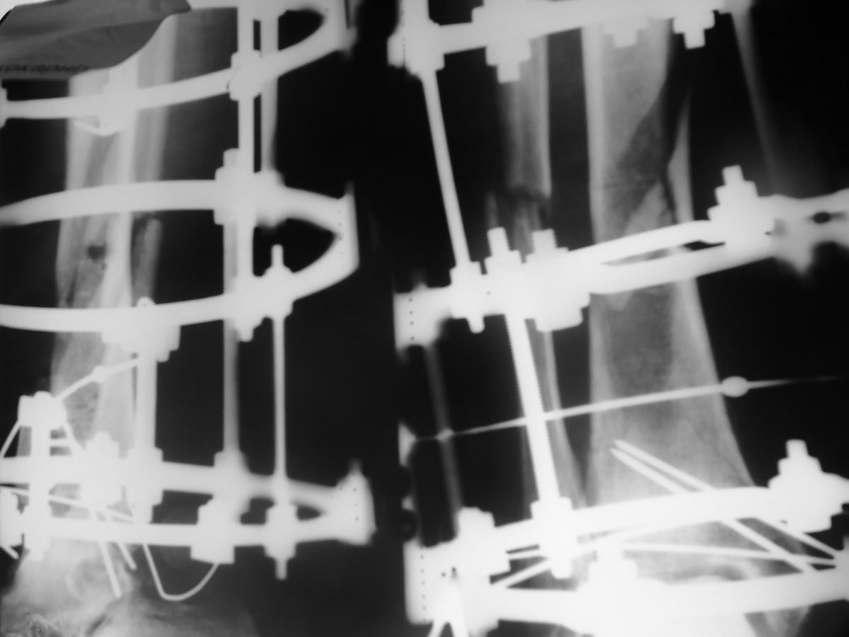 [Ortho] открытый перелом н/3 обеих костей левой глени