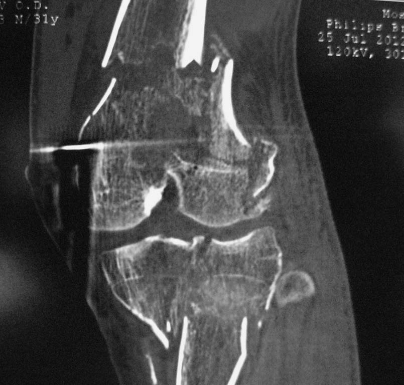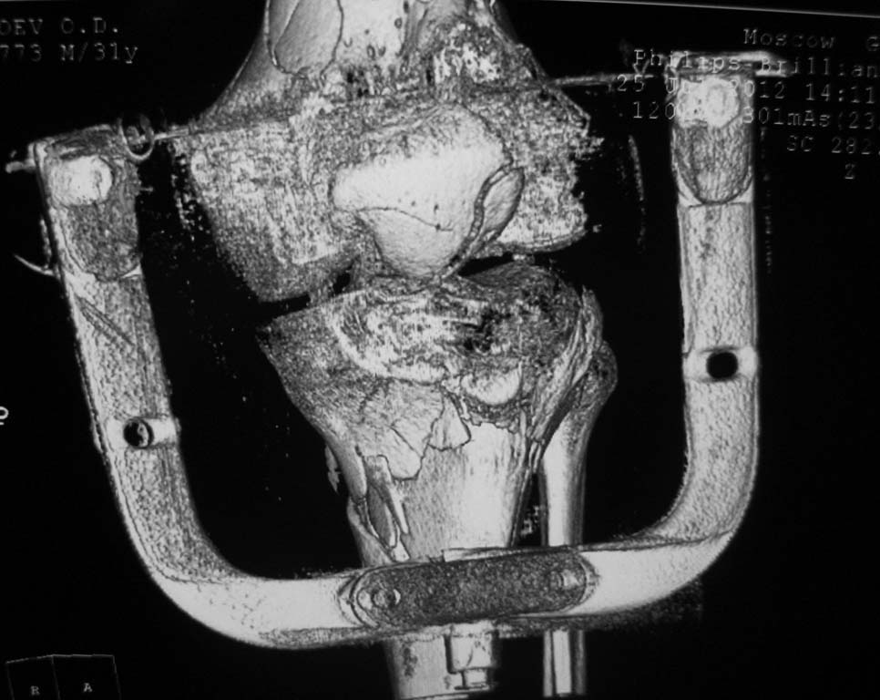 Нужен совет. Открытый перелом в\3 диафиза с оскольчатым переломом дистального метаэпифиза бедра. Закрытый оскольчатый внутрисуставной перелом проксимального отдела большеберцовой кости той же конечности.