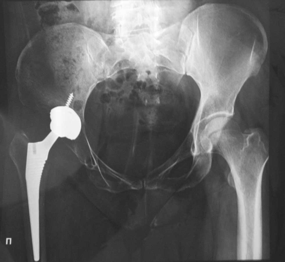 Здравствуйте, уважаемые коллеги! 7 января 2012 года нами была оперирована женщина 42 лет. Был установлен эндопротез керамика по керамике в ТБС.