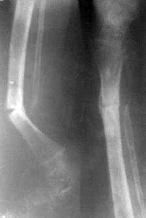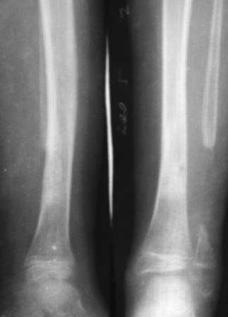 Девочка 2005г.р. В середине 2008 г падает с велосипеда с дедом, возможно был перелом н/з костей левой голени, лечение у знахаря-табиба, но ребенок не смог бегать, часто падал, начал хромать. Май 2009г. обратились к нам, установлен д-з « вялоконсолидирующаяся перелом н/з б/берцовой кости, несросшийся перелом м/берцовой кости со смещением по ширине». Мы решили гипсовая повязка и ходьба с нагрузкой, но по категорическому требованию родителей исправить деформацию м/берцовой кости, произвели операцию ( на свою голову )»о/ репозиция и и/м фиксация спицами м/берцовой кости». Теперь началась самая интересная история! Ч-з недели две в обл. п/о раны м/берцовой открылась свищ с кровянистым выделением, гноя не было, на р-грамме лизис концов отломков м/берцовой кости, к-рый начал прогрессировать, консультирована онкологами, цитология, с подозрением направлена в центральные институты, сделана КТ, онкологическое исключили, в августе попали в остеомиелитический центр, где произведена резекция м/б на протяжение 6-7см, все зажило и выписали (снимок-1). 2010г в мае повторно получила травму, наложена гипсовая повязка (снимок-2) и через 1-2 месяца в одном из центральном институте произведена КДО аппаратом Илизарова , который снят ч-з три месяца (снимок-3) и долго ходила на костылях-мать заставила, как начала наступать, появилась деформация, заказали ортез и так ходила, но деформация прогрессировала, Обратилась к нам в апреле 2012г,(снимок-4) произведена постепенная коррекция на аппарате, и замена на БИОС 01.03.12г плечевым гвоздем, ЭОП нет, поэтому осталась несколько антекурвация (снимок-5), ребенок ч-з неделю начала ходить.Повторный осмотр 22.06.12г- деформация усиливается, за три месяца сращение очень слабое.(снимок-6). (Жаль что многие р-снимки не сохранились, мать обещала хотя бы часть найти)!Что теперь делать?