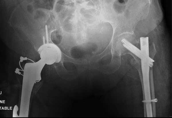 Обычно после чрезвертельных переломов, за исключением молодых, у пожилых остается нестабильность при движении. Часто падают и после 3х мес. в результате падения обнаружен перипротезный перелом (22-23), который зафиксирован Синтез пластиной.