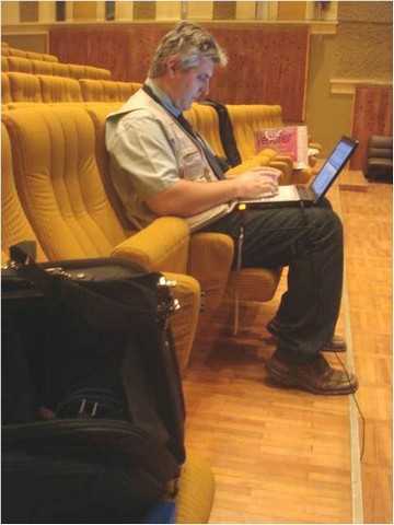 5а). А.Н. Челноков на одной из конференций и его сумка (на переднем плане);