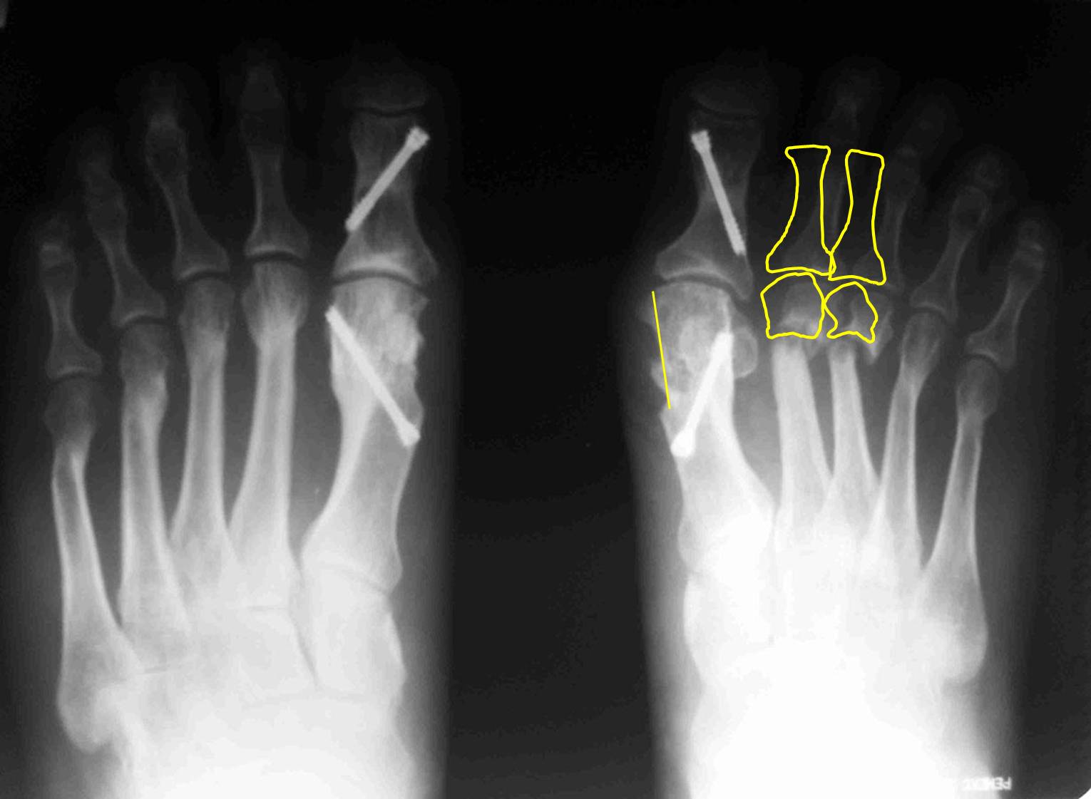 первой плюсневой привело к дестабилизации нефиксированных остеотомий 2 и