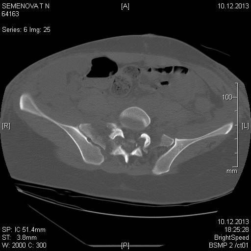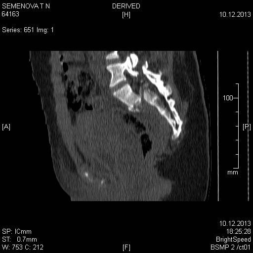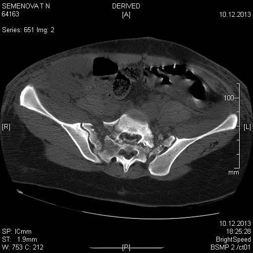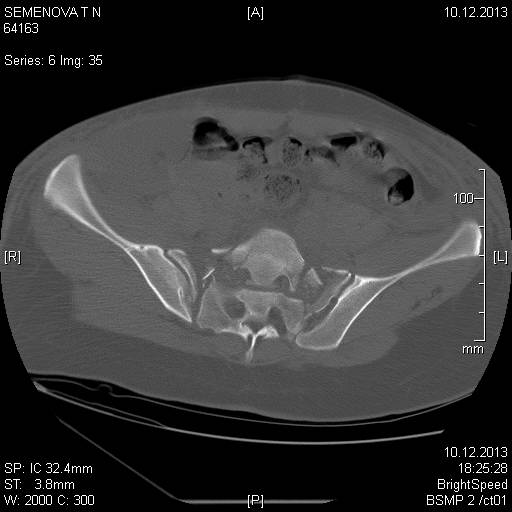уровне S1S2, многооскольчатый перелом латеральных масс крестца с обеих