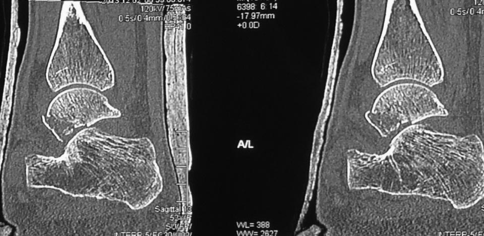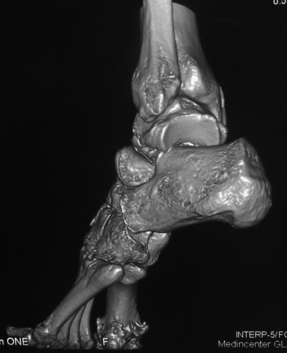 пяточной костью вывихнутый фрагмент таранной кости. На компьютерной