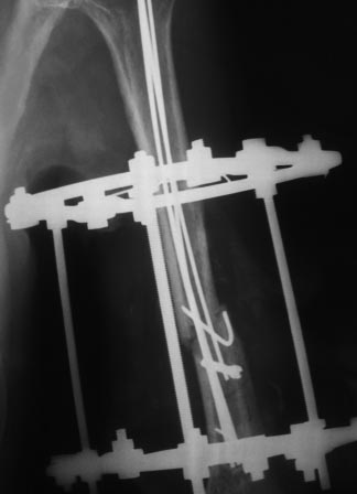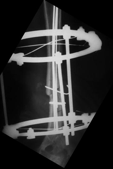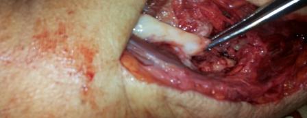 замурован костной мозолью . Кость укорочена на 3 см, пластика типа