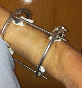 спицами, шов нерва, под нервом слой мышца, АВФ из двух колец с
