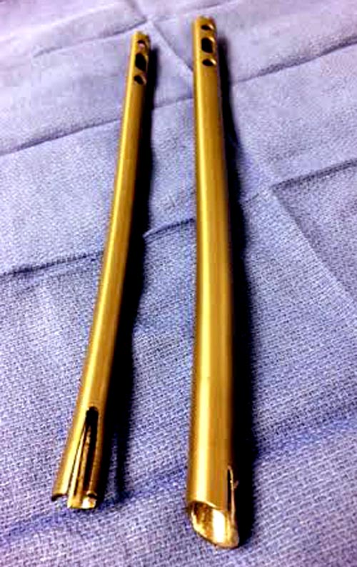 Гвоздь из ретроградного гвоздя DePuy в 15 мм получился немного тоньше,