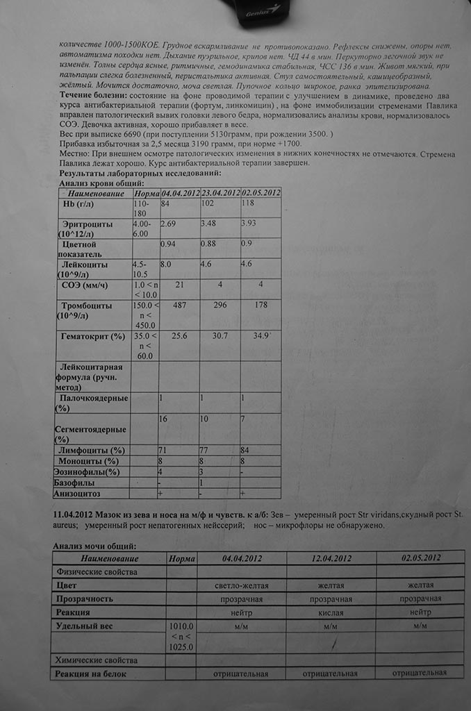 диагностирован гематогенный остеомиелит головки бедра). Лечили