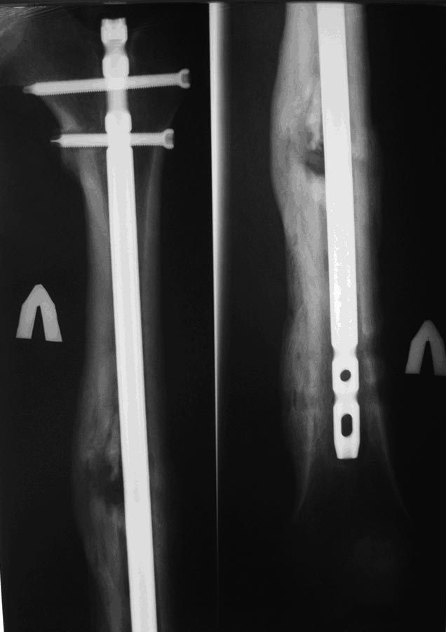 поводу перелома диафиза бедренной кости выполнялся БИОС. Заживление ран