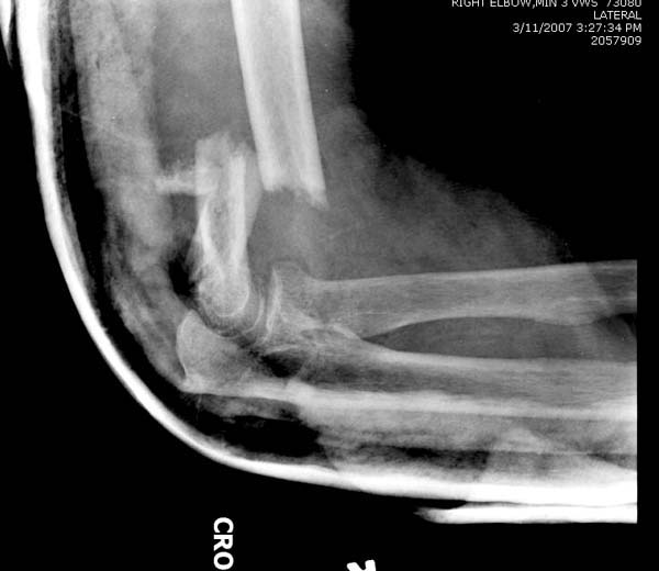 двух сторон мышцы трицепса, но некоторым внутрисуставным переломам