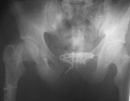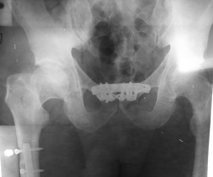 большеберцовой кости пластиной, лонного симфиза двумя пластинами. Пациент