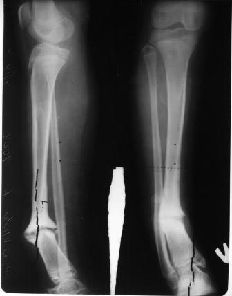 матери). Клинически тугой ложный сустав н/з голени,