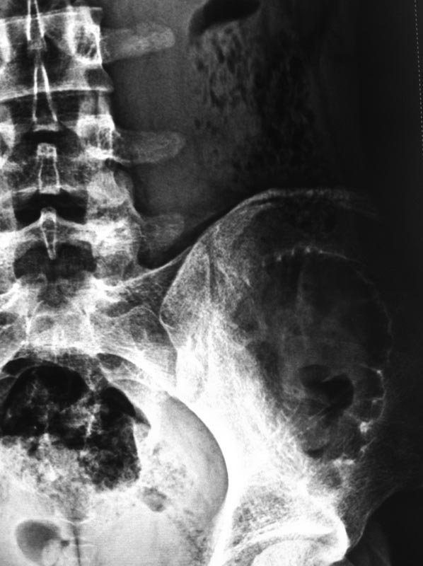 подвздошной и дальше трансосально до полости. Полость очень большая,