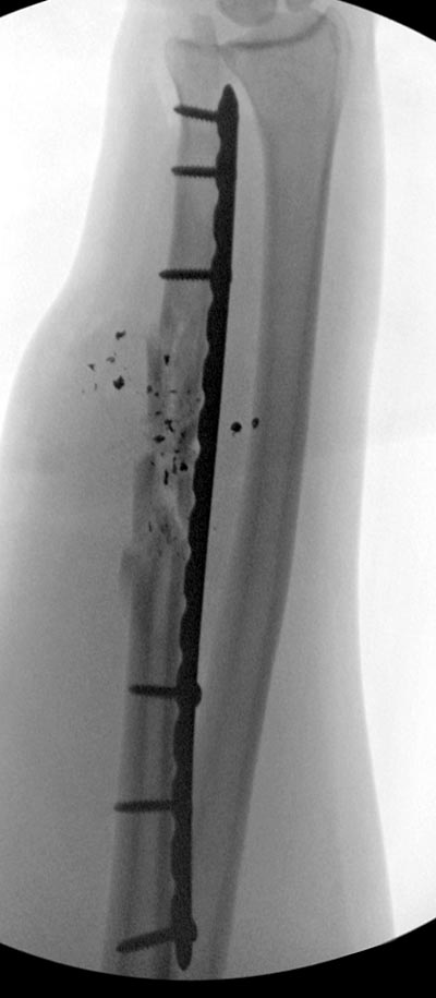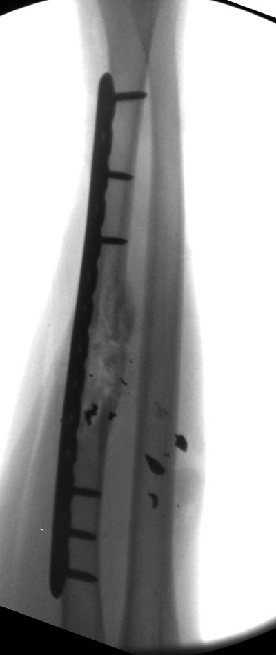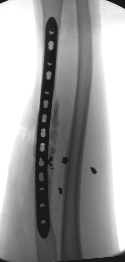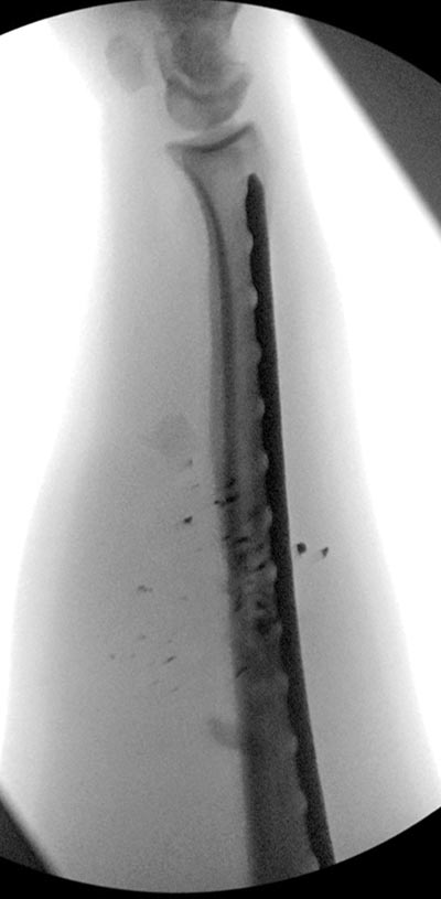ст. - фиксация гвоздем или пластиной. Наружный фиксатор при ранах III