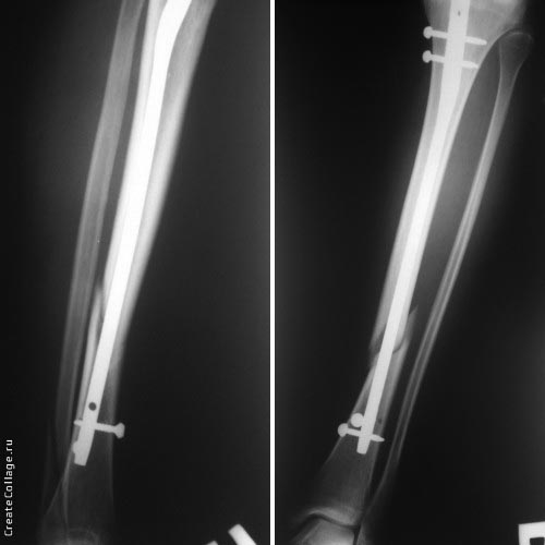 Пациент 26 лет, перелом б/берцовой кости в н/з, при поступлении наложено