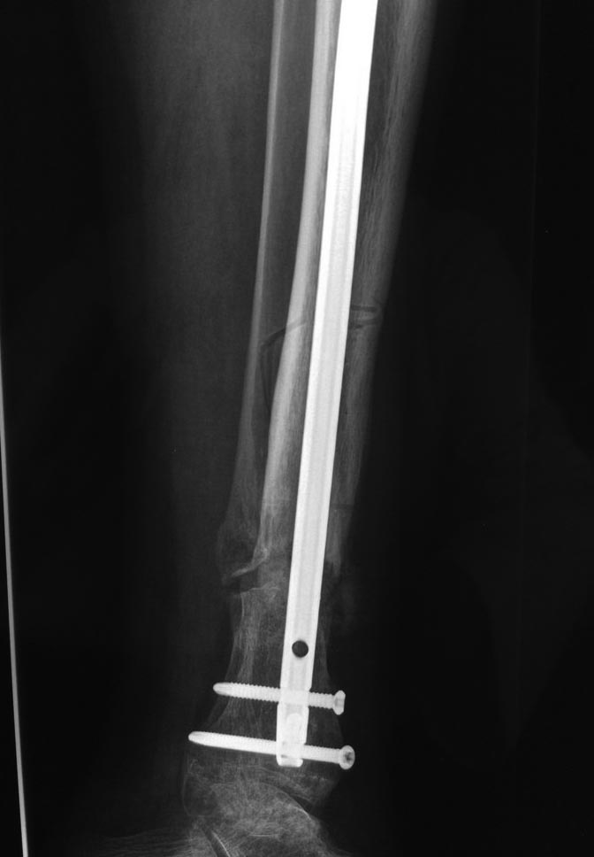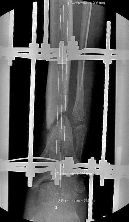 Выполнена операция: Остеотомия большеберцовой кости в нижней трети,