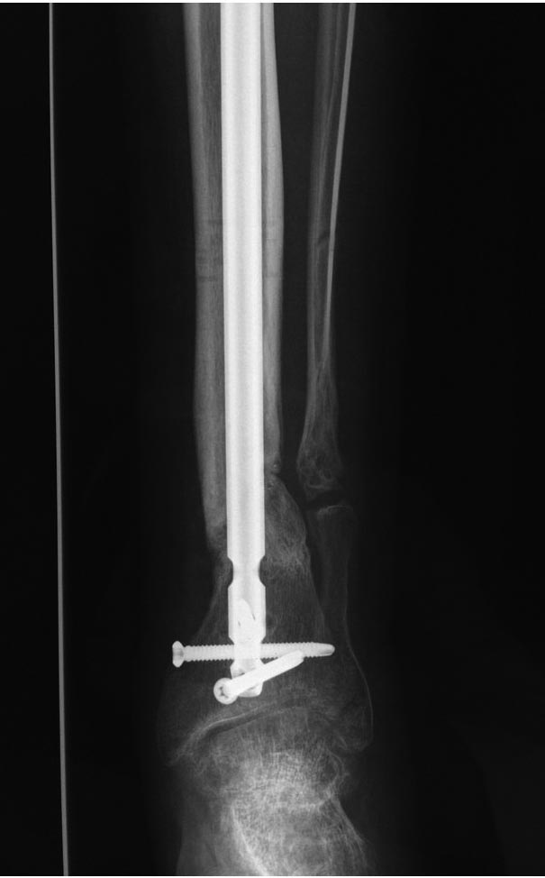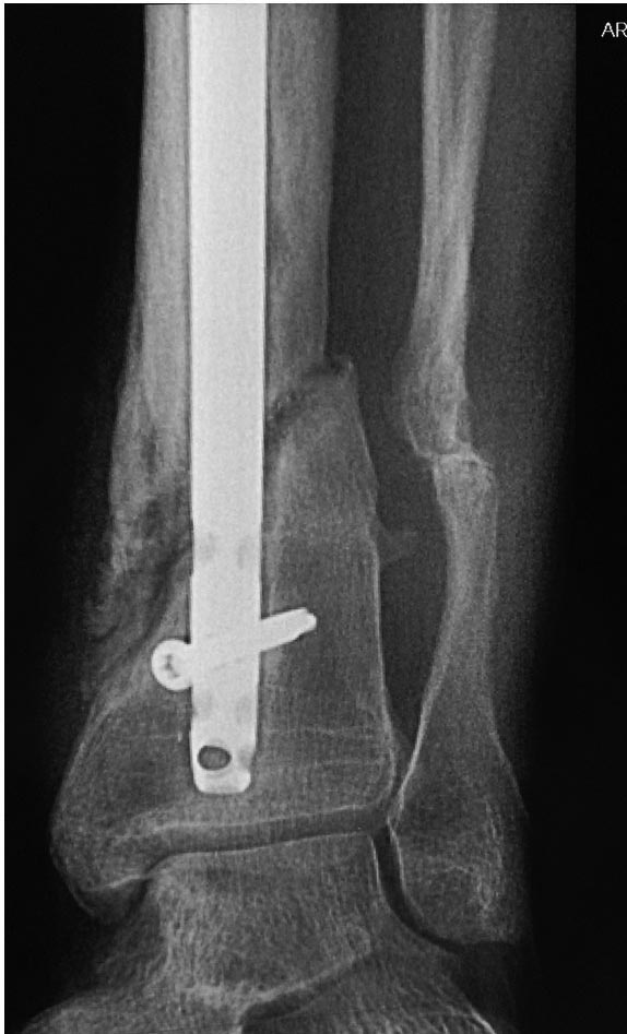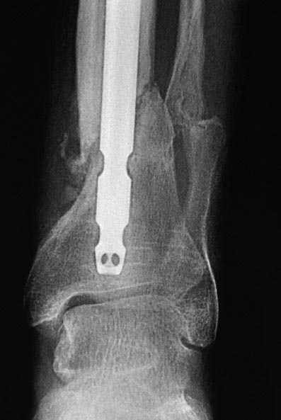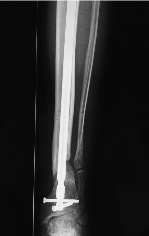 большеберцовой кости в нижней трети, фиксированный интрамедуллярным