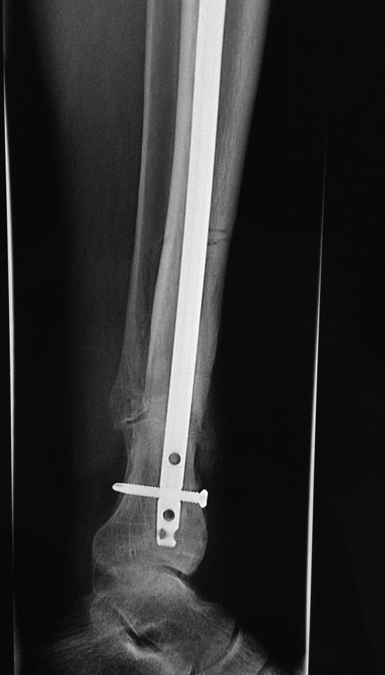 большеберцовой кости сросся. Функция конечности восстановилась.