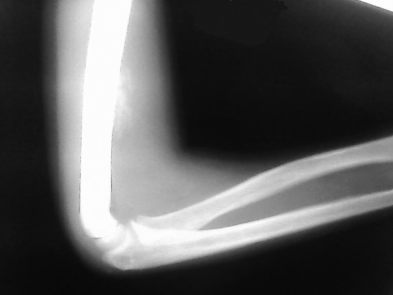 оссификат правого плеча. Сгибательная контрактура правого локтевого сустава.